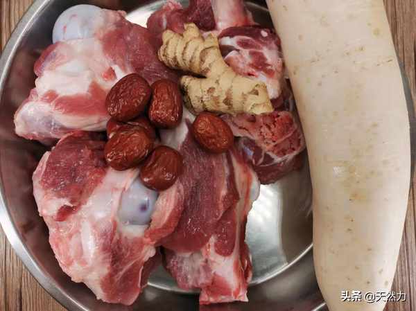 3.為瞭使骨頭湯味道好而不腥味,前期處理工作至關重要。為瞭更幹凈地去除腥味,我們需要把血浸泡掉。因此,在清洗後,我們在水中浸泡半個多小時,以浸泡掉肉和骨頭內部的血液。大約半小時後,大骨頭的顏色會變白,這表明大部分血液已經被浸泡掉。