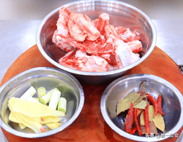 準備2斤羊骨頭,把它們放進一個盆裡。