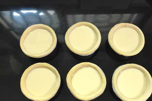 3、蛋撻最好的是現吃現烤,如果蛋撻液多瞭可以放冰箱冷藏,吃的時候隻要倒入蛋撻皮中直接放烤箱烘烤就可以。