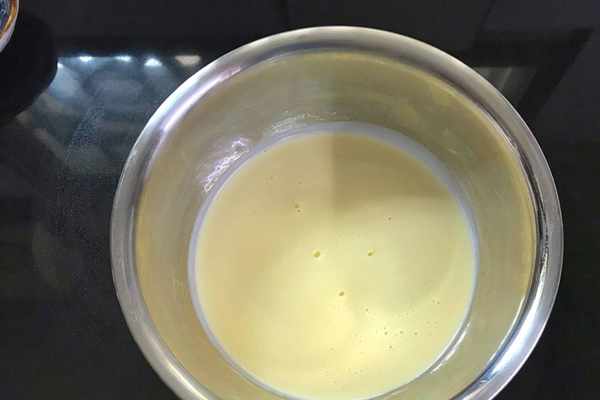 1、蛋撻中的雞蛋液是不用打發的,隻要攪打均勻就好,處理好的蛋液要過得篩一下,這樣做出來的蛋撻液會更加細膩,吃起來口感也更好。