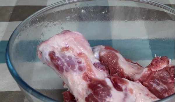 2.首先,取出我們準備好的大骨頭。接下來,我們需要徹底清潔骨頭。將準備好的大骨頭放在一個大碗中,加入適量的水,然後加入一勺幹面粉將骨頭清洗幹凈。面粉可以吸附骨頭表面的污垢,還可以吸收一些血液和水分,使骨頭味道更幹凈、更美味。