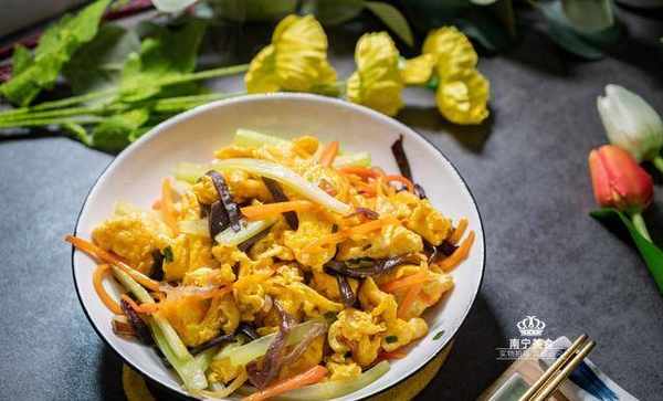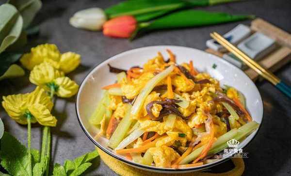 這樣我們一道色香味俱全的蘿卜絲芹菜木耳炒雞蛋就可以出鍋享用瞭。是不是很簡單呢,大傢都動手試試吧。