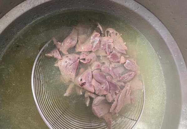 3、豬肝焯水(水開燙30-40秒即可撈出)。