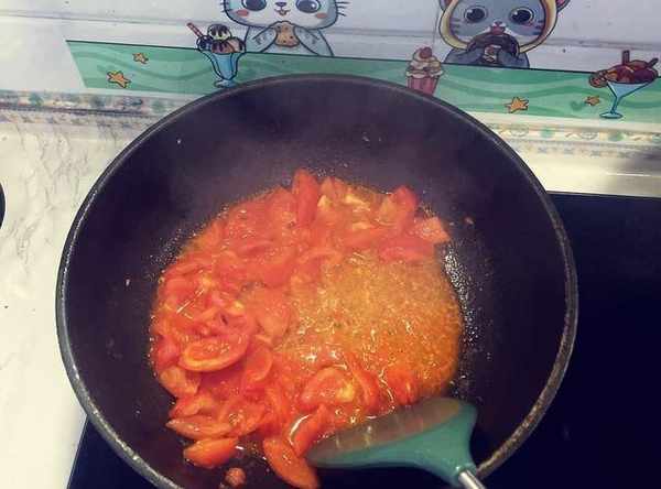 4、另外起鍋倒油,放西紅柿炒出香味後,擠入番茄醬、少量鹽和原味鮮,繼續翻炒幾下,加入肉湯之中,再煮半小時,牛肉軟爛即可出鍋。