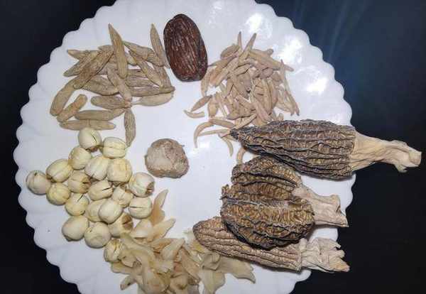 【食材】:羊肚菌3個、蓮子10克、百合10克、蜜棗1個、薑3片、太子參10克、麥冬10克、豬腱肉150克、鹽。