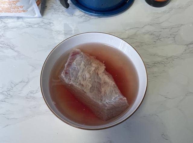 1、把牛肉浸泡在清水中1-2小時,中途可以換2次水,目的是釋放出多餘的血水。
