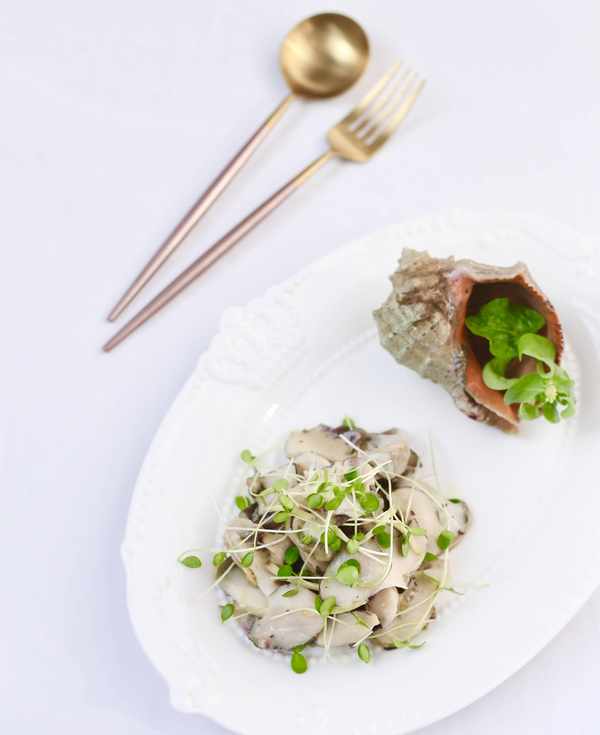 食材:海螺5隻,香椿苗30克,薑絲15克。