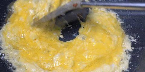 5.另起鍋加入植物油,油熱倒入雞蛋液