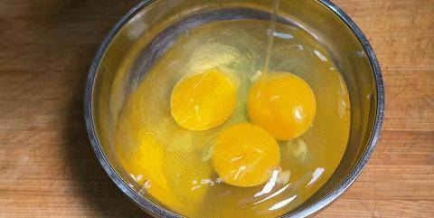 1.在一個碗中打入3個雞蛋,用筷子充分攪散,放一盤備用