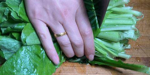 1、小白菜洗凈切成長段,然後加食鹽和植物油焯水,這樣顏色翠綠