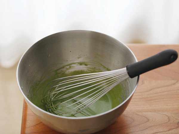 2、攪勻到完全無顆粒,大傢順序不要弄反瞭,不要倒在牛奶裡,純斑斕粉需要油溶才不易有顆粒,蛋糕體才細膩