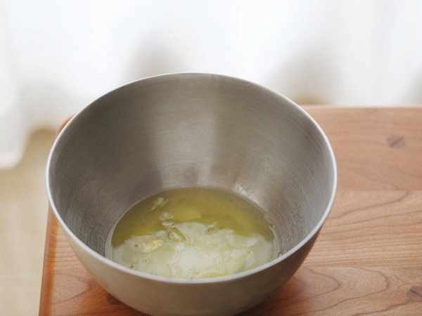 8、蛋清冷凍出一層薄冰,加細砂糖
