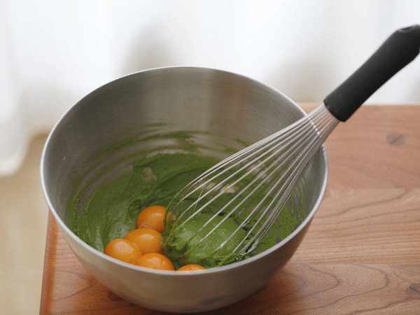 6、最後才是加入蛋黃,後蛋法做出來的蛋糕胚也更細膩一些