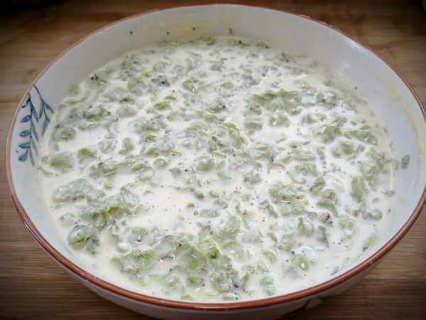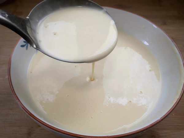 4、面粉的量可以根據人口的多少隨意添加,照著一個方面不停的攪拌,攪拌稠成糊,不能有小面疙瘩。