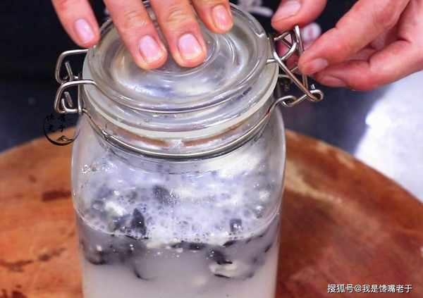 步驟二:把木耳裝入一個寬口的瓶子中,加入2茶匙白糖,適量的溫水,擰緊瓶蓋後來回搖晃3分鐘即可,這時你會發現木耳已經全部泡發好瞭!