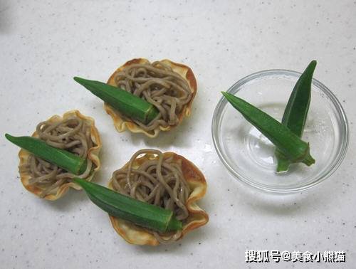 5、放涼的塔模+涼面+川燙放涼的半根秋葵。