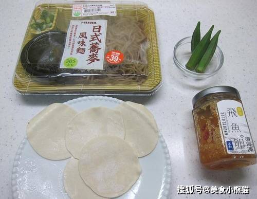 配料:秋葵3支、飛魚卵少許、水餃皮5片