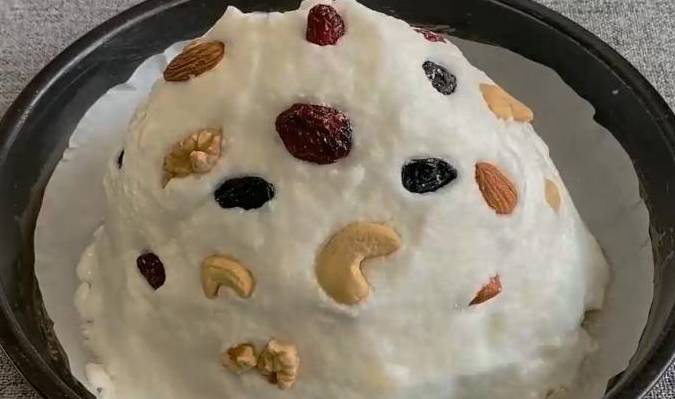 食材準備:雞蛋5個、白糖20克、淀粉20克、各式果幹少許。