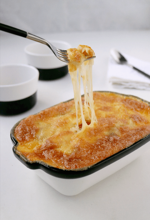 8.烤箱預熱190℃,待烤箱預熱好後,放入烤箱,上下火,中層,烘烤25分鐘左右,奶酪烤至金黃色。烘烤時間依自傢烤箱而定。