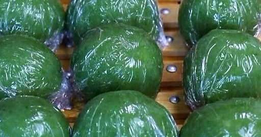 5.然後可以用糯米面團包自己喜歡的餡料,可以包甜豆沙餡也可以包咸蛋黃,因為我比較喜歡咸蛋黃,所以選擇瞭蛋黃和一小塊羊皮面團。包好後裡面是蛋黃,外面刷一層油,用保鮮膜包起來就可以吃瞭,隨身攜帶也很方便。