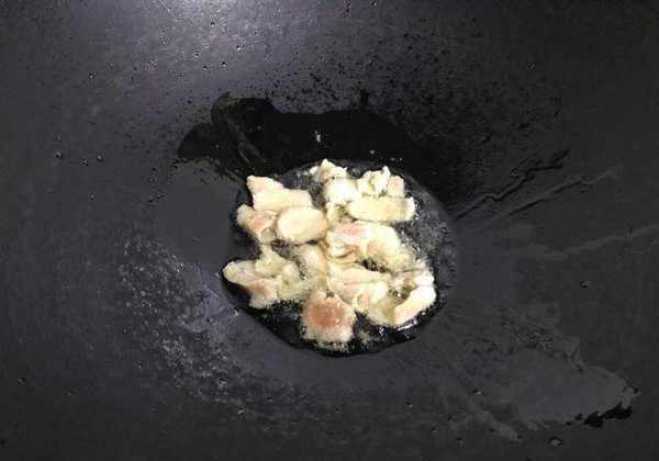 5、鍋中倒入適量油,放入醃好的肉片翻炒至變色。