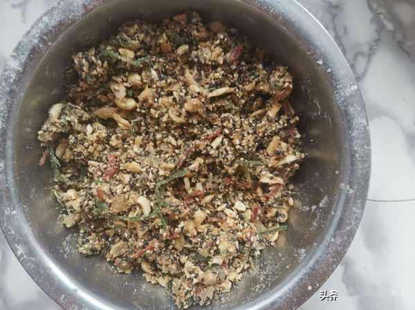 五仁餡料:熟土豆120克,南瓜仁50克,黑芝麻60克,白芝麻60克,青絲50克,紅絲50克,白糖80克,桂花糖漿(蜂蜜)60克,紅糖25克,清水少許,熟麵粉150克,玉米油50克。