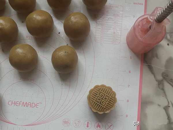 第七步:全部做好以後,就可以用月餅模具來壓制月餅了。