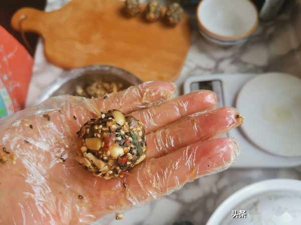 第四步:這樣五仁餡就拌好了,用手抓成團,月餅是50克,如果用皮和餡是1:1的比例,那麼餡料就25克一個,其實25~30克之間都行。
