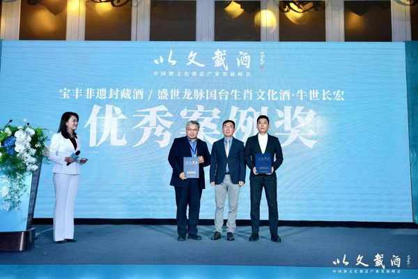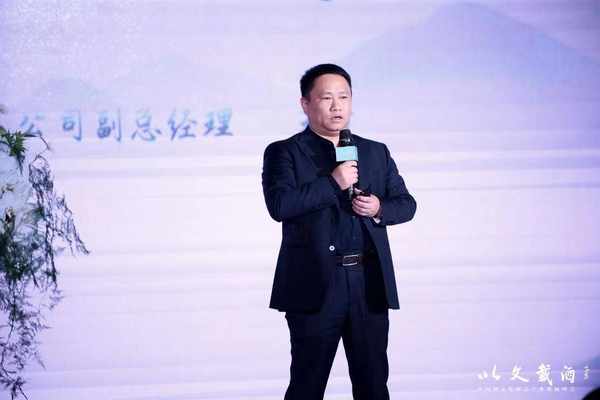 國臺銷售公司常務副總湯旭談及獲獎的盛世龍脈國臺生肖文化酒·牛世長宏(生日禮版),闡釋瞭國臺產品結構的“一體兩翼”,即品牌酒做強,系列酒做大,文創酒做精。如此才能做到國臺文創,合道而同。