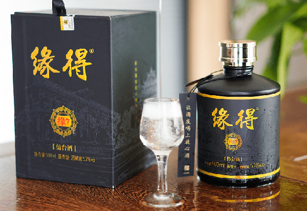 緣得酒是醬香型白酒,是醬酒行業的後進之秀。該酒產於貴州省茅臺鎮,以肉薄皮厚、顆粒飽滿的紅纓子糯高粱為原料,取赤水河水,用大曲醬香工藝釀造而得。