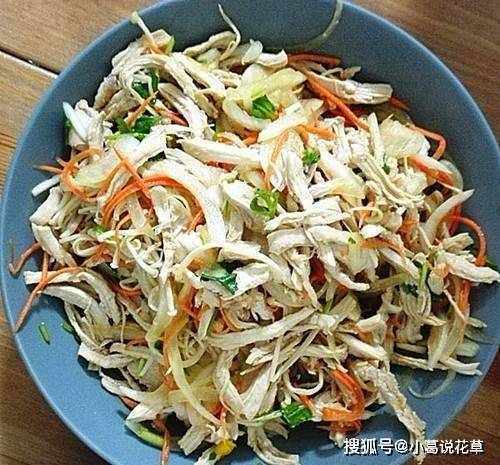 【做法】先將雞胸肉煮熟撕成小條,撕開後放入大碗中。胡蘿卜取適量切好,將胡蘿卜條和金針菇放入煮雞胸肉的水中汆燙2分鐘,撈出瀝幹,加入雞絲中。2瓣大蒜,切碎。將原味醬油1勺、鹽少許、香油、檸檬汁幾滴、味精少許、蔥花加入雞絲蔬菜碗中,拌勻即可食用。