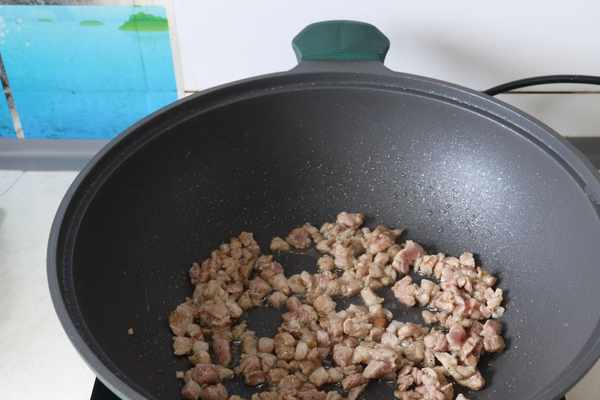 熱鍋涼油,放入豬肉丁翻炒到變色後盛出備用