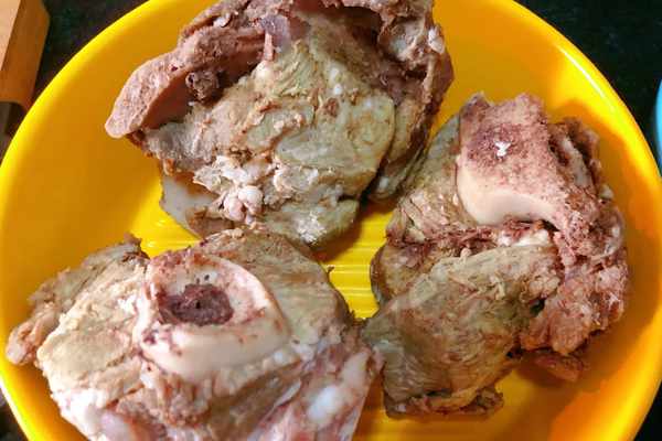 骨頭我已經提前煮好瞭,冷水下鍋,這樣為我早上燉豆角節省瞭很多的時間。