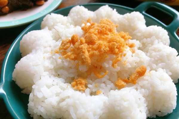 米飯,我撒瞭點肉松,味道更香瞭。