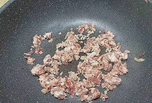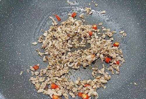 2、肉末有點肥,直接下鍋翻炒。