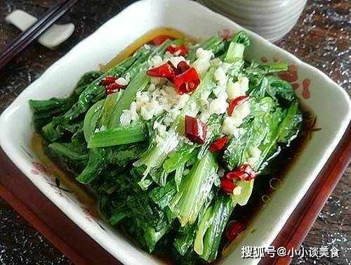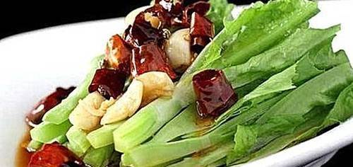2.生菜切長條,不加醬油,少許鹽,蒜,辣椒,香油點綴,淋上熱油即可。