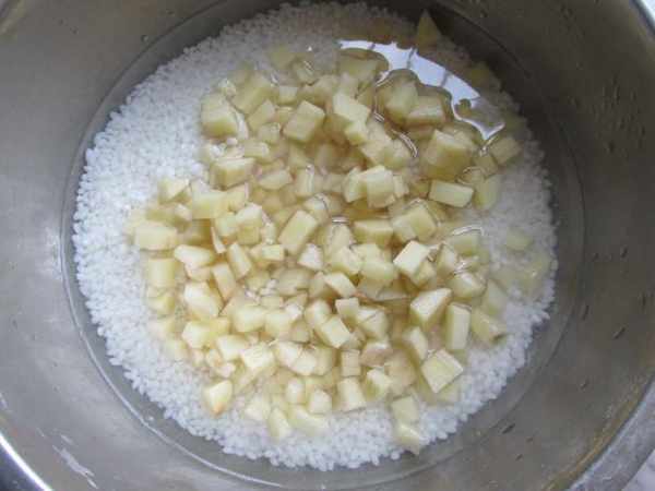 第一步:把大米清洗乾淨,洋芋去皮切成丁。