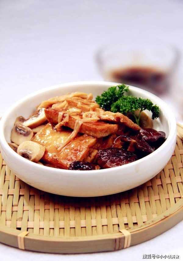 1.香菇、厚樸片、蔥切碎。2、炒鍋加入花生油,60%熱時,加入面筋炒至杏黃色,撈出檢查油;3、炒鍋加油,燒熱至60%,放入蔥、薑炒香,加入醬油和紹酒5克;4、燒開後,撈出蔥、薑;5、加入面筋和紹興酒5克;當剩下大約一半的面筋時,把面筋翻過來;7、蓋上鍋蓋燜5分鐘,加入香菇、厚樸片、香菇和精鹽,鍋背離火;8、將玉蘭片放在碗底,豆泡放在碗裡,把香菇擺好四周,放上籠子用大火蒸10分鐘,取出放入大湯中盤子;9、鍋內放入藥明,加濕淀粉勾芡,淋上花椒油,淋在豆腐泡上。服務器。