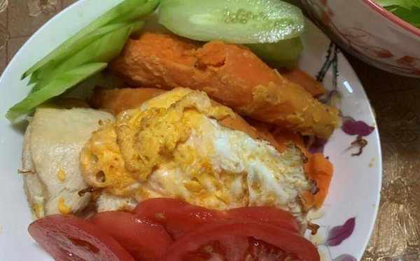 要做這頓美味的早餐,首先需要準備好早餐的食材。食材可以根據自己的喜好來選擇。如果傢裡還有一些食材,就全部拿出來。紅薯皮清洗幹凈後蒸紅薯。可以用紫薯、土豆和山藥。將它們蒸熟並放在一邊備用。然後將西紅柿和黃瓜切片。先將雞柳焯一下,然後用少許油炸一下。最後準備兩個雞蛋,把雞蛋煎一下,做成荷包蛋備用,材料就準備好瞭。
