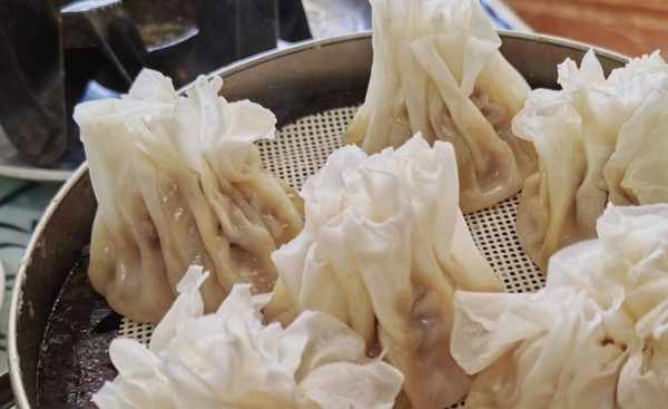 包頭燒麥制作工藝十分獨特,選料精良,有皮薄餡多的特點。剛出籠的燒麥,鮮香四溢,皮子精而薄,晶瑩透亮,外皮是用燒麥錘搟出的花邊,羊肉餡子也是肥瘦適中,外形呈現石榴狀,看上去就讓人特別有食欲。當然吃包頭燒麥也頗有講究,第一個不蘸任何蘸料,品羊肉的原汁原味;第二個蘸著醋吃,可解油膩;第三個蘸著辣子吃,豐富口味。