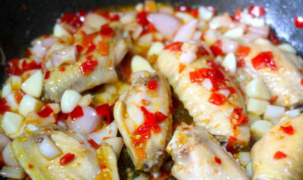 所需食材:雞翅、剁椒、蒜、薑片、蔥、洋蔥丁、植物油、鹽、五香粉、醬油