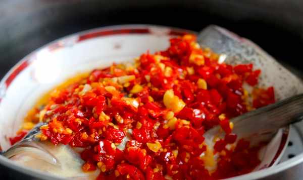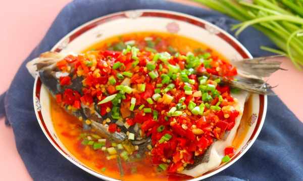 所需食材:大蒜、魚頭半個、植物油、蒸魚豉油、剁椒、雞粉、薑、蔥