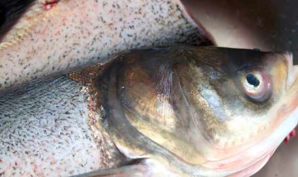 3、取出傢裡的盤子,把魚頭放上去,接著把炒好的料放在魚身上,開始來蒸。