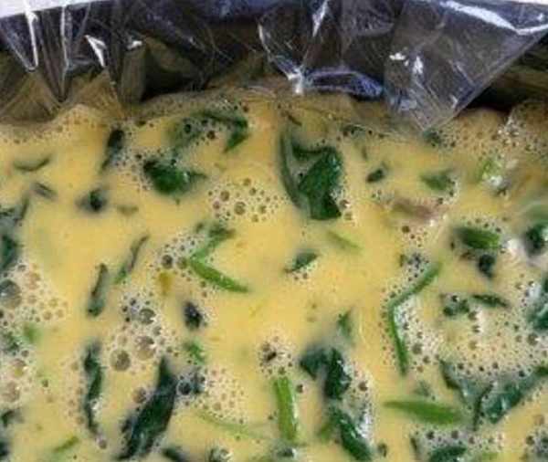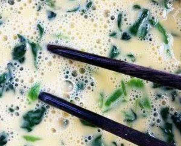 菠菜碎和打散的雞蛋加淀粉水攪拌均勻