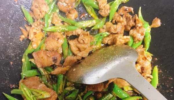 豬肉切好後,不需要再用香料醃制,直接放入碗中開始煎即可。首先,在鍋裡放油。油熱後,將切好的辣椒放入鍋中爆香。生熟後加入適量鹽,炒勻即可去除。炒辣椒的時候可以加少許油,然後開始炒瘦肉。
