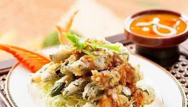 秋葵,圓白菜,泰國炸粉,自制醬汁。