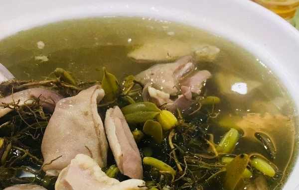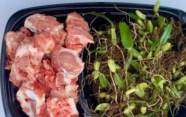 【做法】龍骨洗凈剁小塊,鍋內加入水,放入龍骨和薑片,焯燙去血水後倒去水分和浮沫備用。新鮮石橄欖用清水徹底沖洗幹凈,燉煮40分鐘。