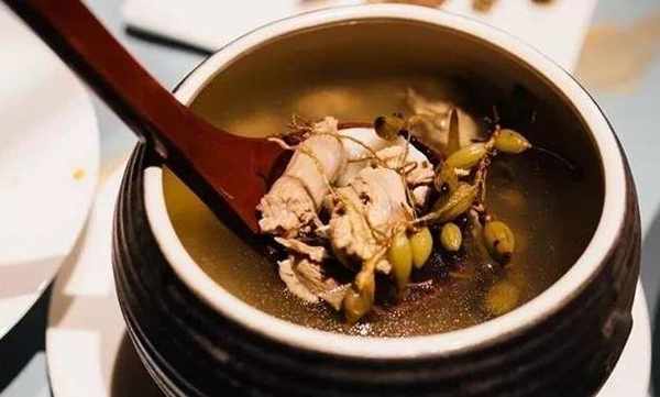 【烹飪】上述材料洗凈下瓦鍋,鍋內加水2500毫升,大火轉小火煮1.5小時後下鹽調味即可飲用。