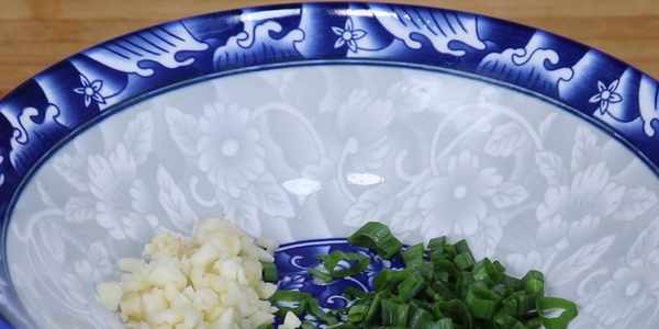 1、首先,我們準備上一些小蔥,切成蔥花;然後將幾顆大蒜拍碎,切出來點蒜末,兩種料切好之後,裝碗備用。