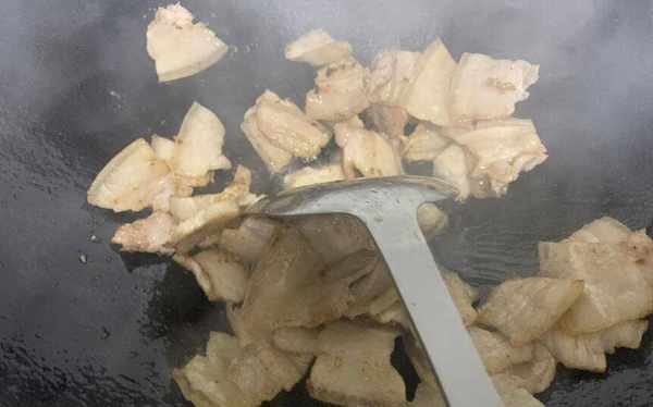 回鍋肉的做法很簡單。首先準備好豬肉,比如後腿肉、三排肉、前腿肉等,然後將豬肉洗凈,放入鍋中,加入適量的水,再加入一片薑片煮熟。直到豬肉可以用筷子剁碎就可以出鍋瞭。